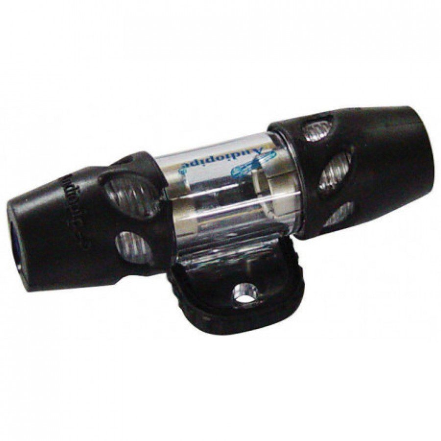 In-Line 5AGU (AUE) Fuse Holder Designed for use with 4AWG cable, this fuse holder accepts up to 80A fuses. Clear polycarbonate housing greatly eases viewing the fuse status. Allen screw cable attachment ensures a solid, high current connection, and eliminates the need for crimping. O-ring sealed to keep out moisture.