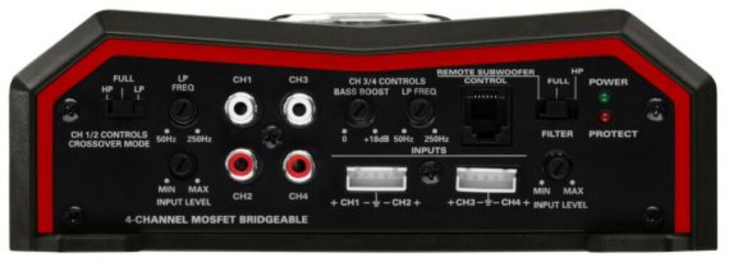Elite MODEL 1600W High Output 4 Channel Full Range, Class A/B Amplifier Dim:11.9″L 7″W 2.25″H