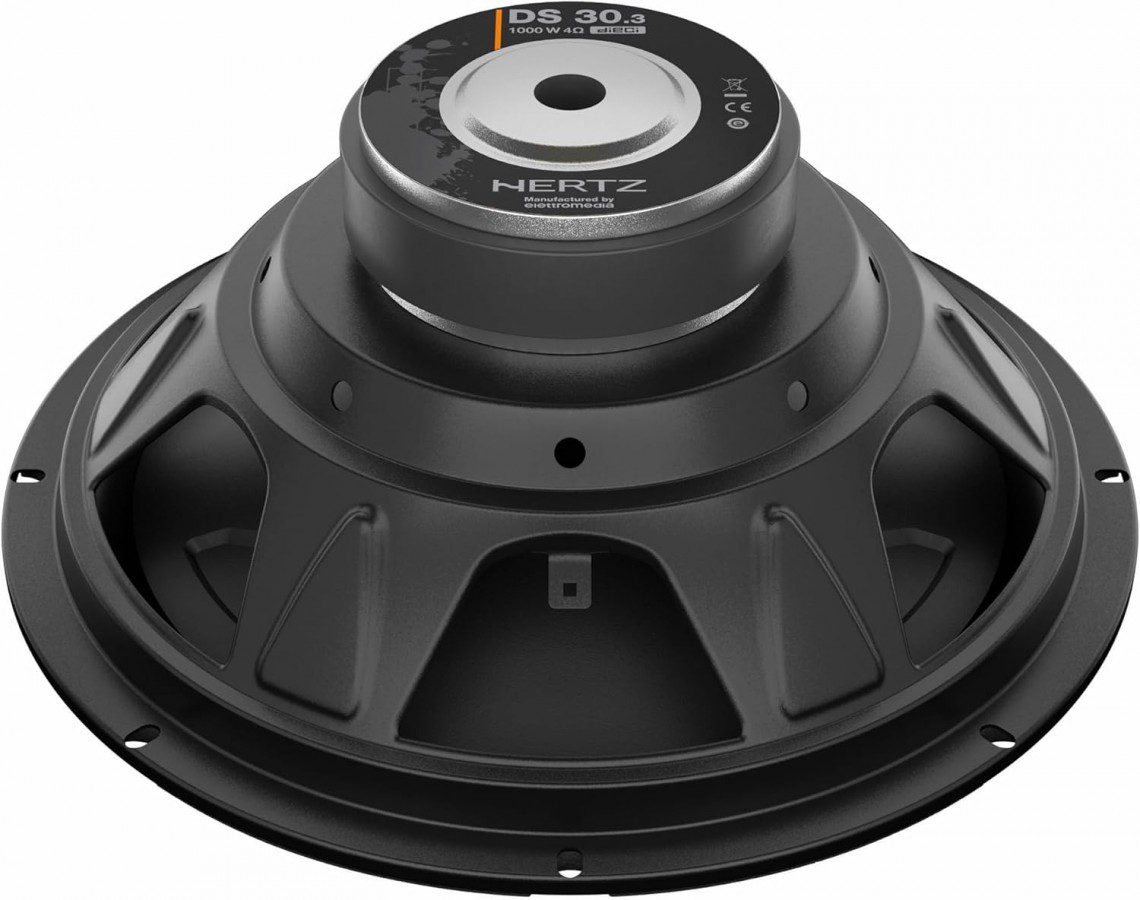 Hertz DS 30.3 car audio subwoofers box offers high efficiency and exceptional power handling. Equipped with a polypropylene membrane and butyl rubber surround, they provide high excursion with minimal distortion. An efficient cooling system ensures optimal heat dissipation, increasing their reliability.