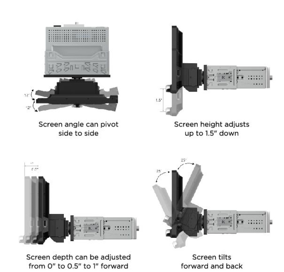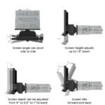 Screen Adjustments: Height, depth, Tilt, Pivot and Rotation