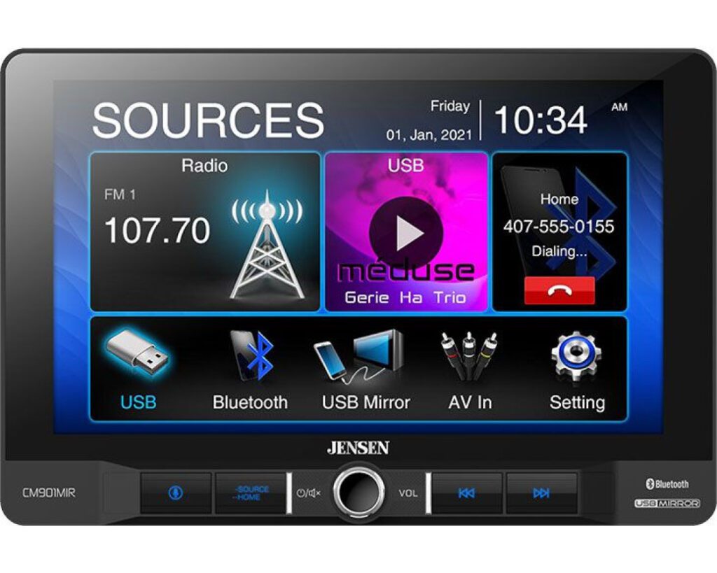 JENSEN CM901MIR 9” S/DIN TOUCHSCREEN MULTIMEDIA RECEIVER 240 WATTS WITH USB SCREEN MIRRORING