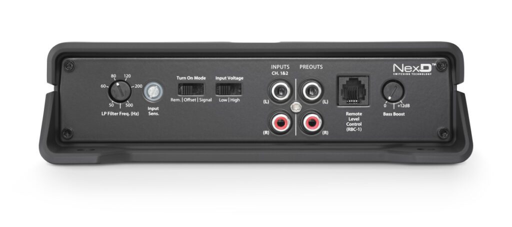 The amp includes speaker-level inputs with signal-sensing amp turn-on, along with preamp inputs and outputs, so it’s ready to work in virtually any system. Differential-balanced inputs plus JL Audio’s NexD™ amp technology keep the signal sounding pure and noise-free at all times.