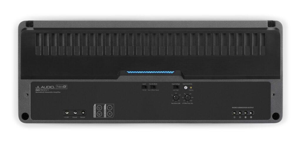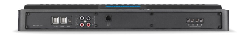 The RD1500/1 is also equipped with an onboard LED-clipping indicator. This all-new, innovative feature lets you easily set your amplifier’s input sensitivity setting, quickly and accurately, with no special equipment needed. The RD1500/1 features a durable, black powder-coated finish and a top-mounted, dual-color LED light strip that reports the overall status and condition. Control of the subwoofer level from the driver’s seat is easily accomplished with the addition of the optional RBC-1 remote level control (sold separately).