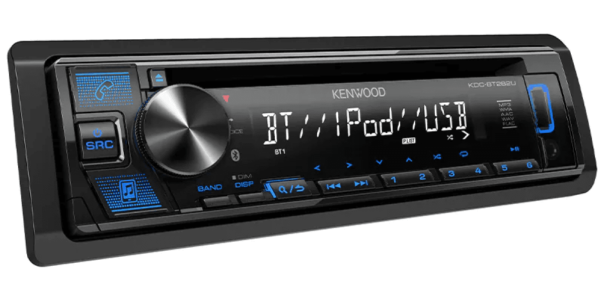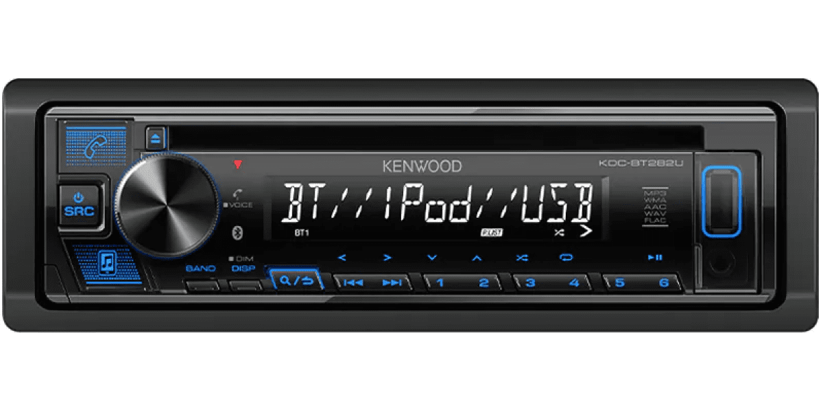 KENWOOD EXCELON KDC-BT282U S/DIN, CD RECEIVER WITH BLUETOOTH AUDIO, USBMP3, FLAC, AUX IN, AM FM RADIO, DETACHABLE FACE WITH 13 DIGIT LCD DISPLAY AND BLUE BUTTON ILLUMINATION