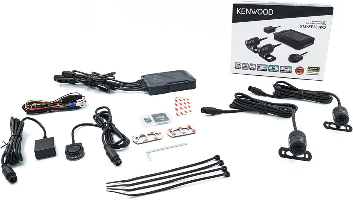 KENWOOD STZ-RF200WD MOTORSPORTS 2 CAMERA HD DASH CAM WITH GPS AND REAR VIEW CAM 1080p DUAL DASH ACTION CAMERA SYSTEM – WiFi, GPS, G-SENSOR LOOP, 32GB CARD, PERFECT FOR MOTORCYCLES, UTV, ATV AND GOLF CARTS