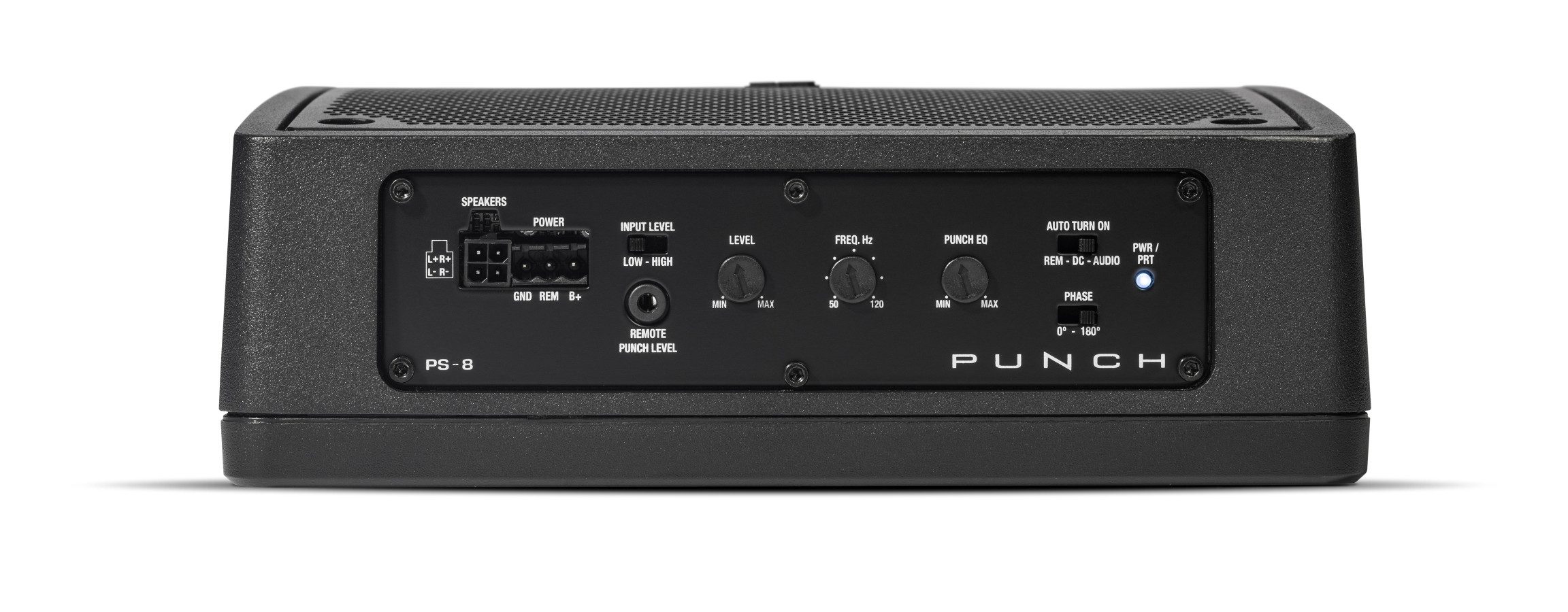 If you need to quickly add bass to a system but don’t have much space or height to make it happen? Then the PS-8 is a perfect candidate! The PS-8 features a Punch 8” subwoofer in a custom sealed enclosure and is powered by a mighty 150 Watt amplifier. The system is all-inclusive, so you only need to run power, ground and a signal from the source to get this baby moving. Features a durable exterior that resists scrapes and bumps while in the trunk or cargo area.