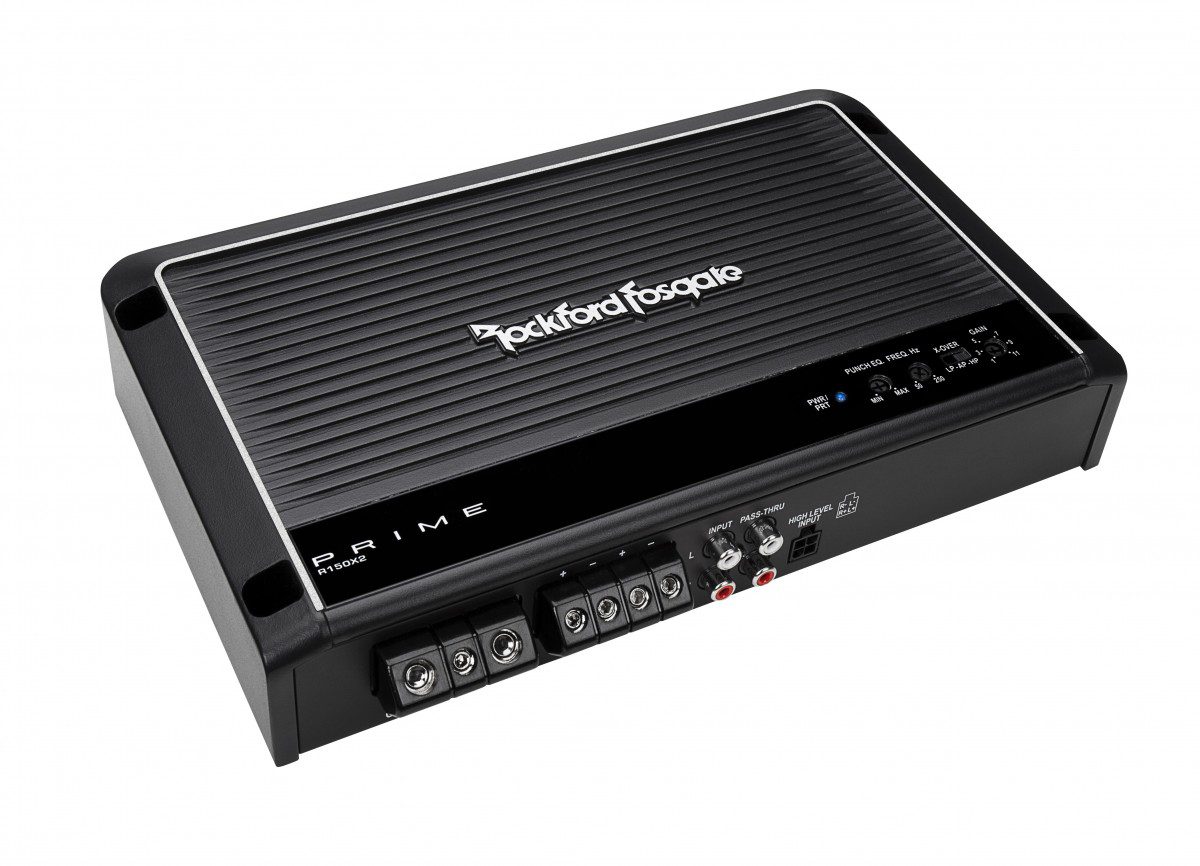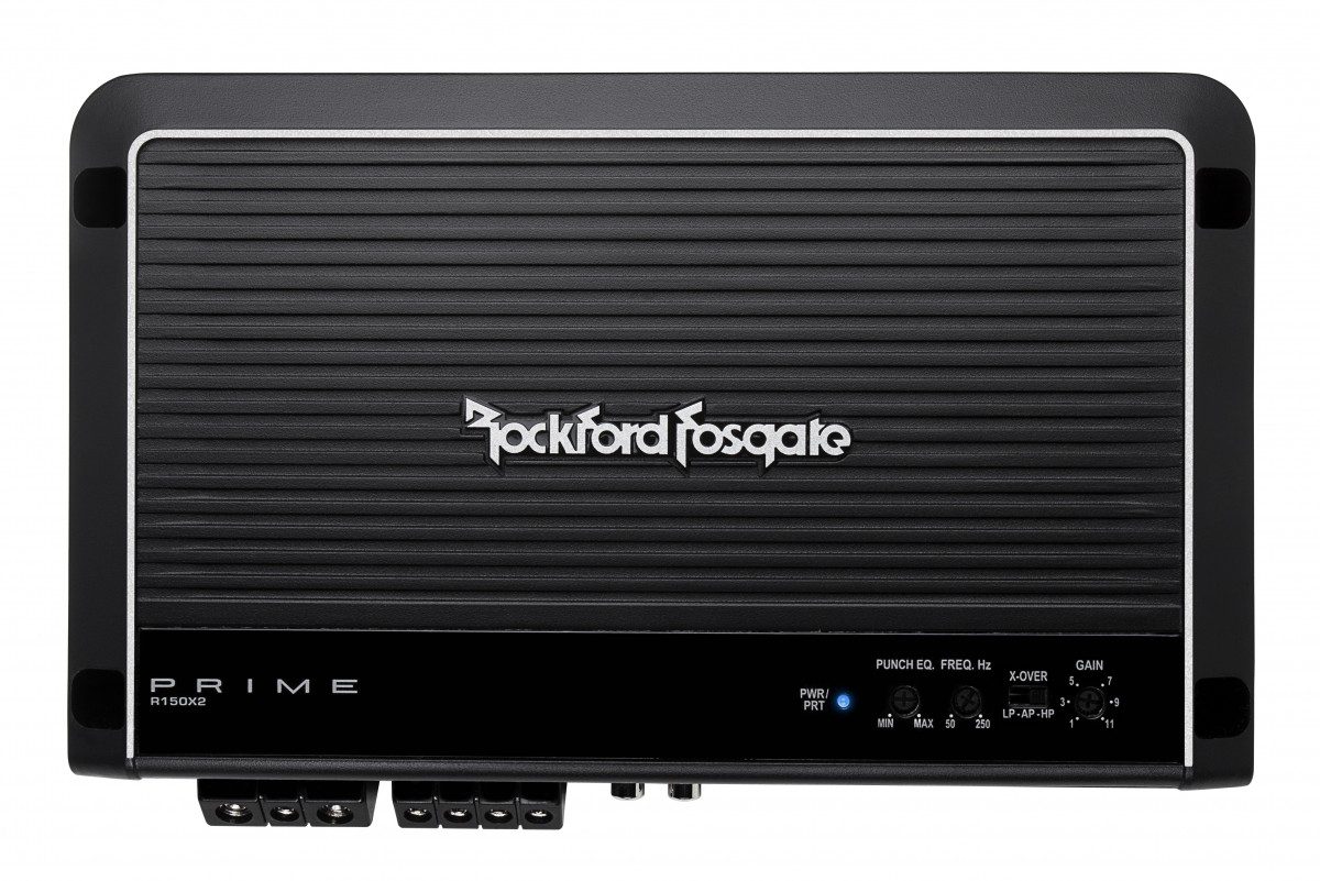 Rockford Fosgate amplification at an unbelievable value. The R150X2 2-channel amplifier pumps out more than enough to power a set full-range or component speakers, or you can bridge it into a 4-ohm load to produce 150 watts for a single R1S410 10″ or R1S412 12″ woofer.