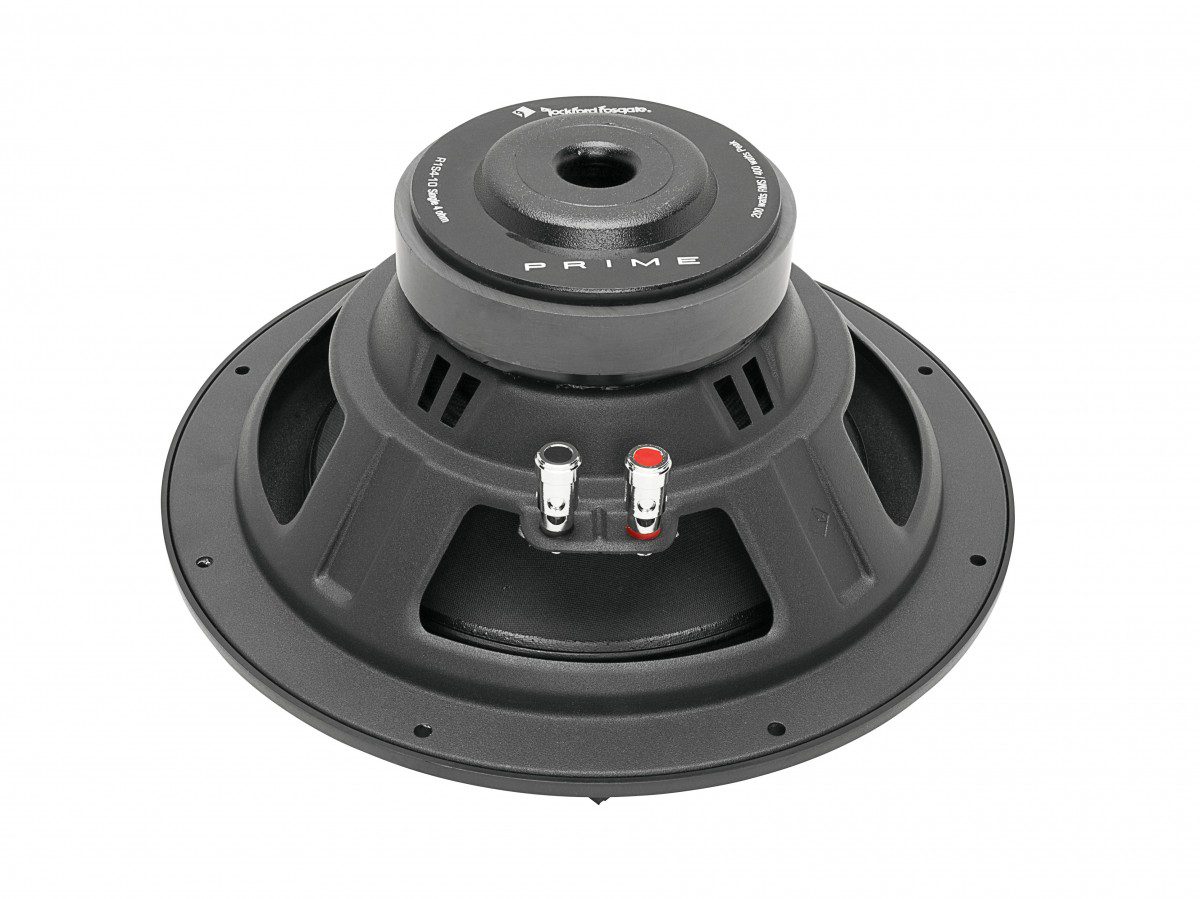 The Prime 10″ woofers offer Rockford Fosgate performance at an unbelievable value. These models feature solid stamped steel frame, quick-release compression terminals, and a Parabolic polypropylene cone. Best of all, they work great in sealed enclosures.