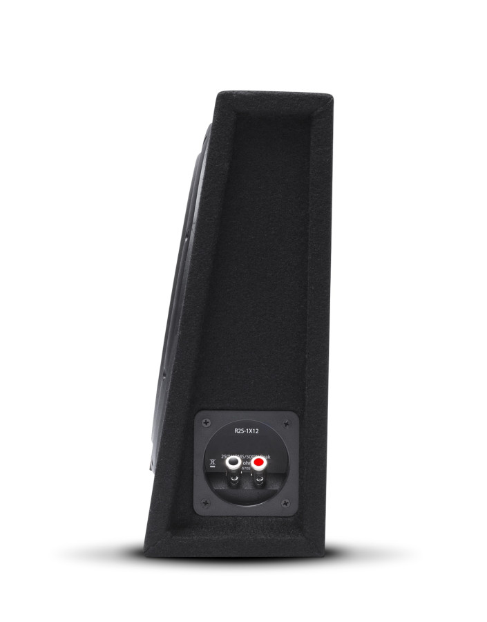 When you have no space for bass, our PRIME R2S 12" shallow loaded enclosure is sure to be a perfect fit for your ride and your budget. These shallow loaded enclosures can fit in tight spaces due to the slim-line depth of 3.25" on the top and 5.25" on the bottom. The wedge design is optimized for single-cab trucks with limited seat travel. Are you ready to rock out? Yeah, we thought so.
