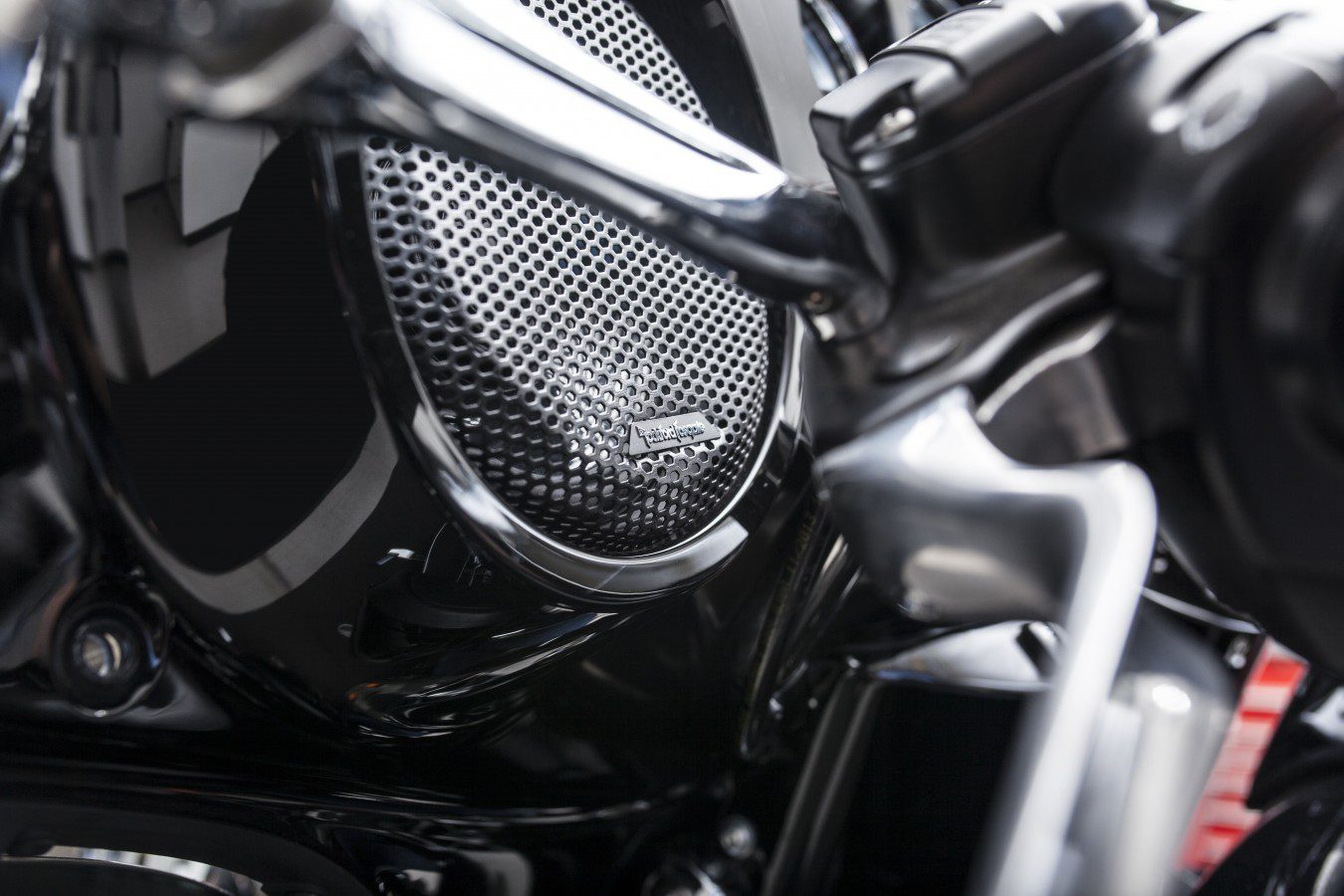 It is made water/weather resistant with the addition of a Santoprene front isolation spider connecting between the tweeter housing and cone assembly. The speaker requires no modification of the factory location and comes with new grille assemblies for both fairing and Tour-Pak applications.